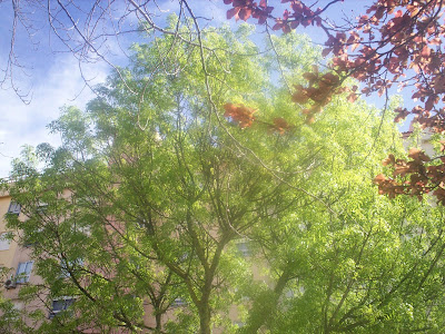 Outra árvore que está a mostrar-se toda vaidosa: o freixo. Vejam os freixos que por aí há. Numa manhã clara, aos raios do sol molhado pela chuva que tem caído! Uma maravilha!